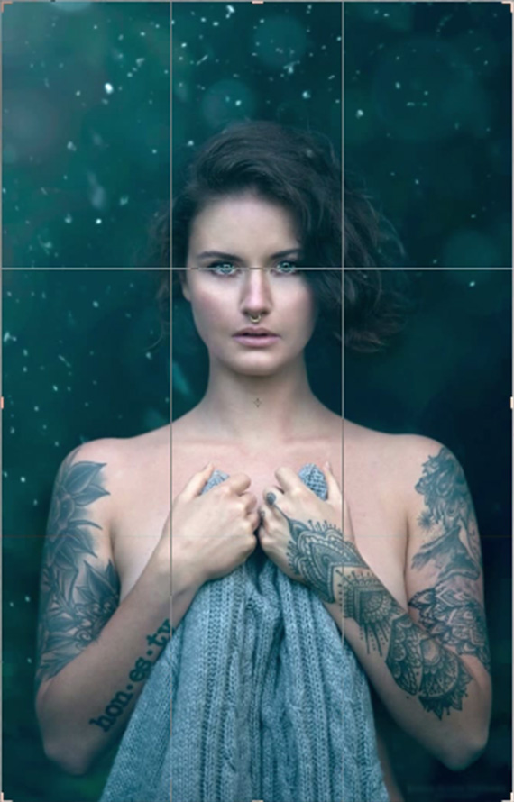 Line Guida, che guida l'occhio verso il viso o personaggio principale, può essere anche la forma del soggetto o piante e arredi